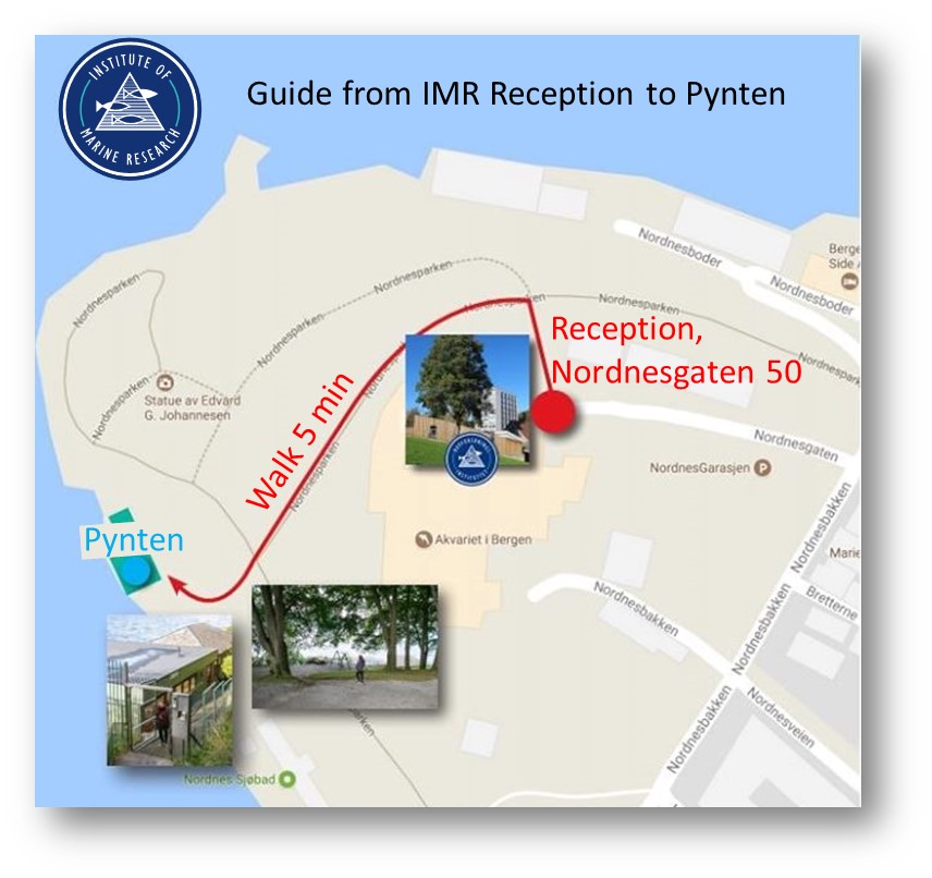 Walk (20 min) to the reception of the Institute of Marine Research, Nordnesgaten 50, 5005 Bergen, Norway.